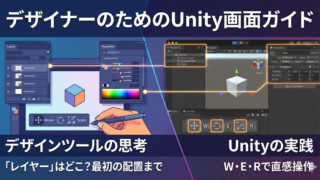 Unity(デザイナー向け) 【第2回】”レイヤー” はどこ?デザイナーのためのUnity画面ガイドと最初のオブジェクト配置 Unityのインストールが無事に終わり、プロジェクトを立ち上げたあなたを待っているのは、無数のボタンと英語のメニューが並ぶ "「コックピット」のような画面" かもしれません。「どこから触ればいいのかわからない……」と圧倒される必要はありま... 2026.01.02 Unity(デザイナー向け)