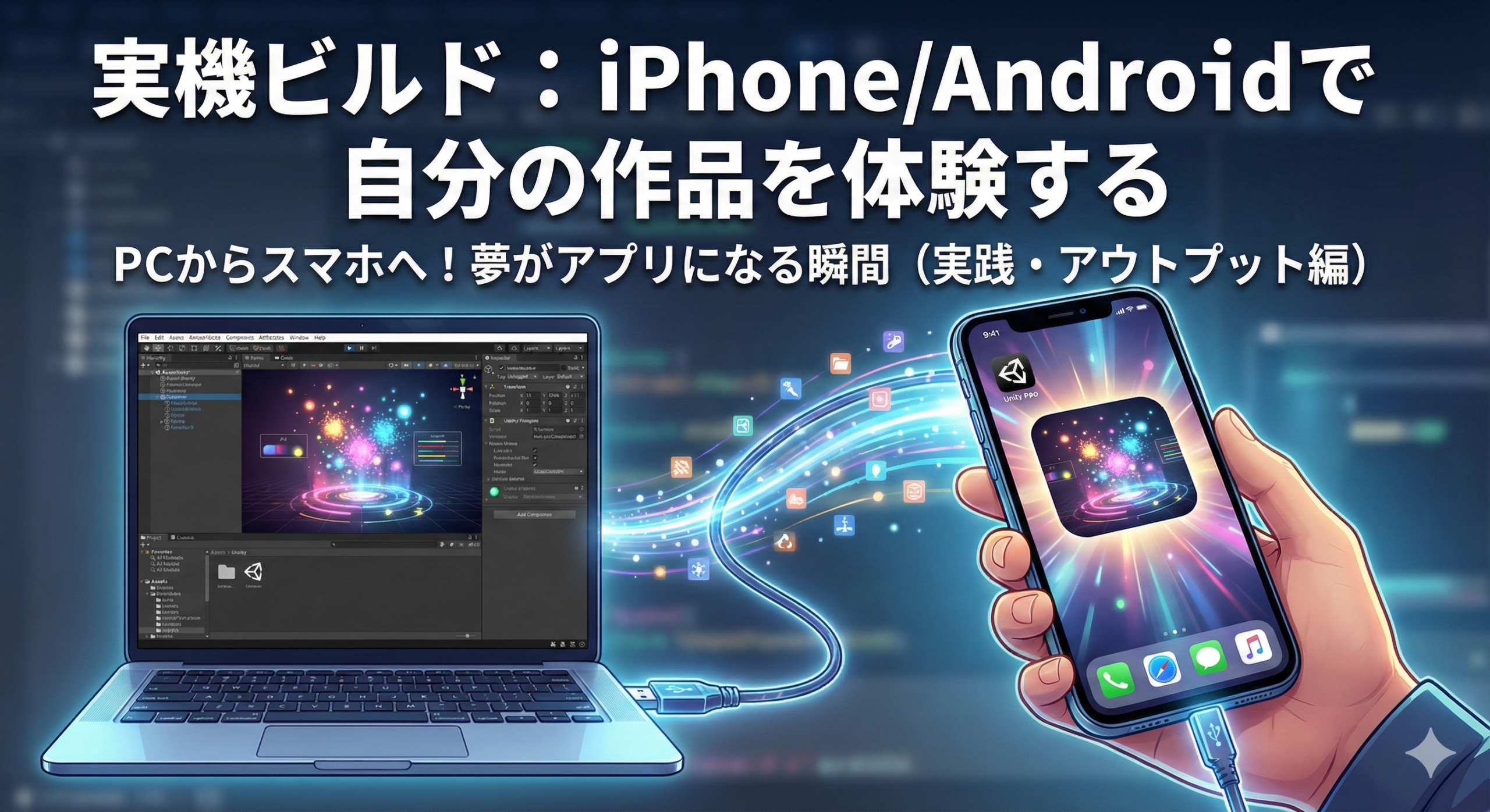 最初はエラーが出るかもしれませんが、諦めないでください。自分のスマホで自作のエフェクトがキラキラと光るのを見たとき、あなたは「Unityを使えるデザイナー」から “プロダクトを生み出せるクリエイター” へと進化しています。