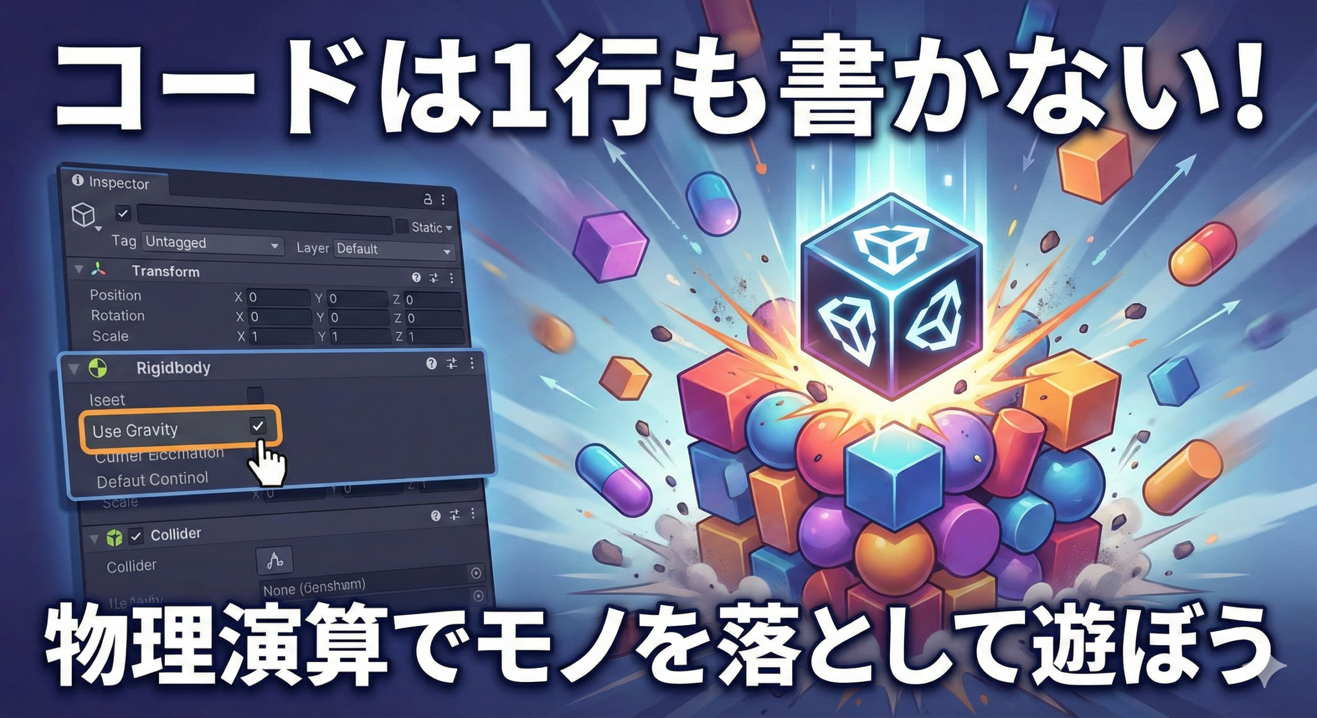 これだけでも十分に「演出」ができますが、Unityにはもう一つ、もっと手軽に、そして驚くほどリアルにモノを動かす方法があります。